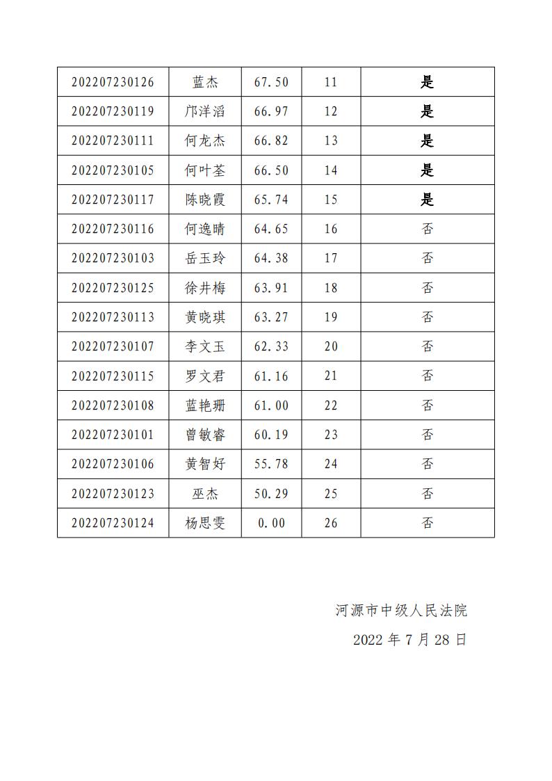 河源市中级人民法院2022年书记员招聘笔试成绩公布