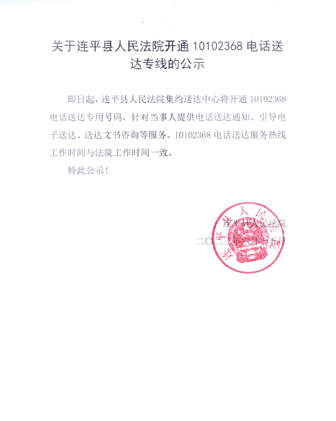 关于连平县人民法院开通10102368电话送达专线的公示