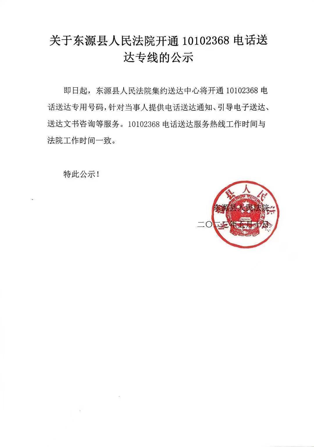 关于东源县人民法院开通10102368电话送达专线的公示