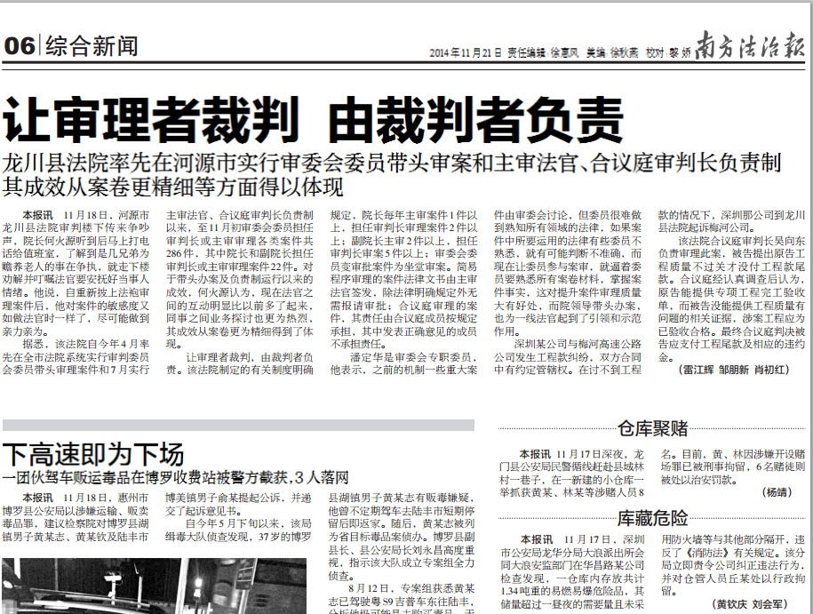 2014年11月21日 来源:南方法治报06版(综合新闻)头条新闻