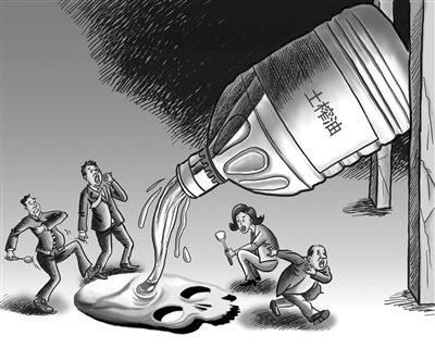 一些小作坊式的花生油厂加工工艺简单,通常只有花生去壳、加热烘烤、压榨出油、过滤沉淀四道工序,在加工过程中难以将霉变的花生过滤出来,缺乏精加工和检验,难以达到食用油国家安全标准,容易出现黄曲霉素B1超标现象,有的甚至超标数倍以上。而黄曲霉素B1是一级致癌物,对人体肝脏组织有破坏作用,可导致肝癌甚至死亡。